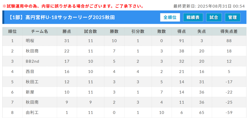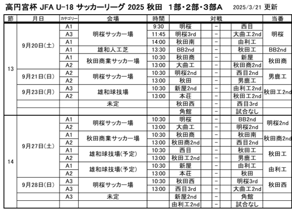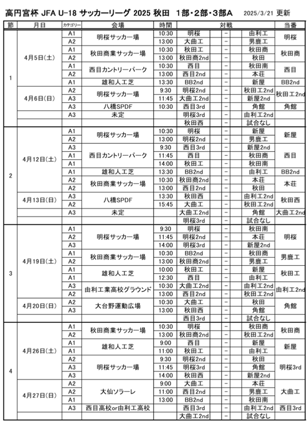 高円宮杯JFA U-18サッカーリーグ2025 秋田