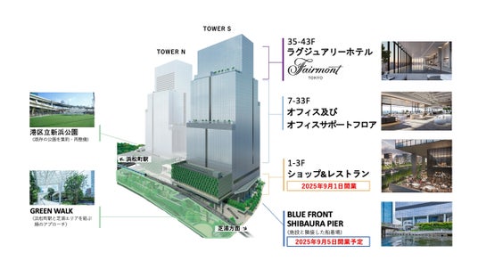 野村不動産株式会社(本社:東京都港区/代表取締役社長:松尾 大作)と、東日本旅客鉄道株式会社 (本社:東京都渋谷区/代表取締役社長:喜㔟 陽一)は、共同で推進している国家戦略特別区域計画の特定事業である、BLUE FRONT SHIBAURA(以下「本プロジェクト」)のツインタワーのうち南側の1棟目TOWER Sが2025年9月1日に商業エリアのグランドオープンを迎え、全体開業いたしました。