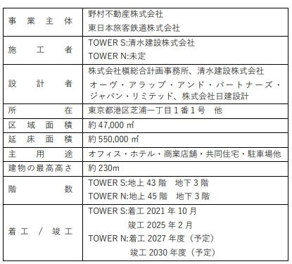本プロジェクトは、多様なニーズに応える、地域にひらかれた施設を目指し東京の水辺に新たな賑わいとライフスタイルを創出し、東京の都市力向上とまちの活性化を目指し、2030年度に予定するツインタワーの2棟目TOWER Nの竣工に向けて、引き続きまちづくりを推進してまいります。