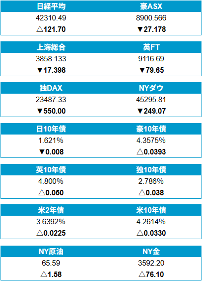欧州市場に入るとポンドが急落。英長期債と英株も売られて始まった。スターマー英首相が前日に発表した経済チームの再編がトリプル安の背景と見られる。首相は1日、リーブス財務相の下で財務次官を務めていたジョーンズ氏を官邸内の統括役として引き入れると発表。市場では、財政健全派のリーブス財務相の立場が弱まりつつあるとの見方が出ていた。
