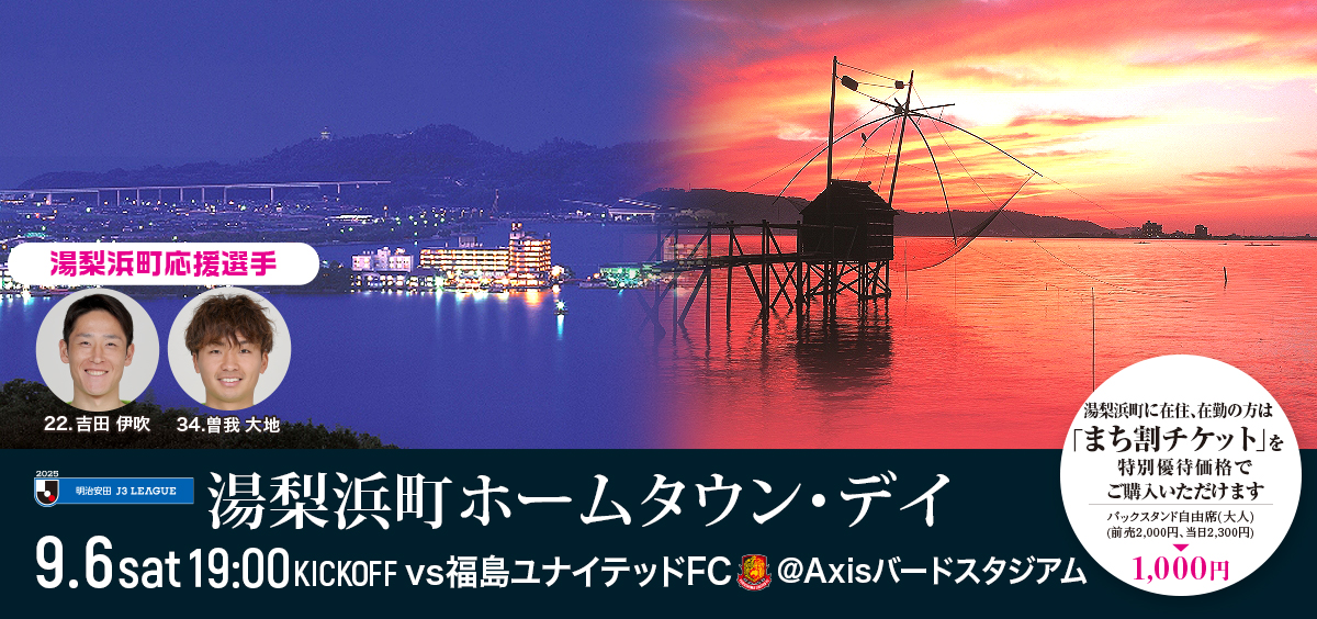 9月6日(土)福島ユナイテッドFC戦は、湯梨浜町ホームタウン・デイです。
