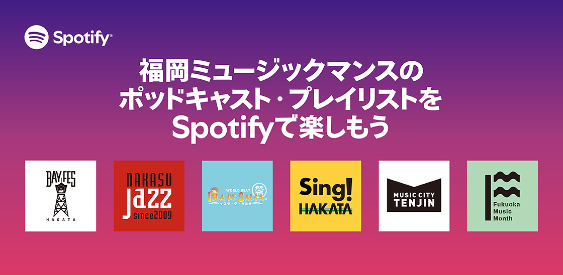 Spotifyでは、福岡ミュージックマンスの各イベントの出演者や雰囲気がわかるプレイリストが公開中です。