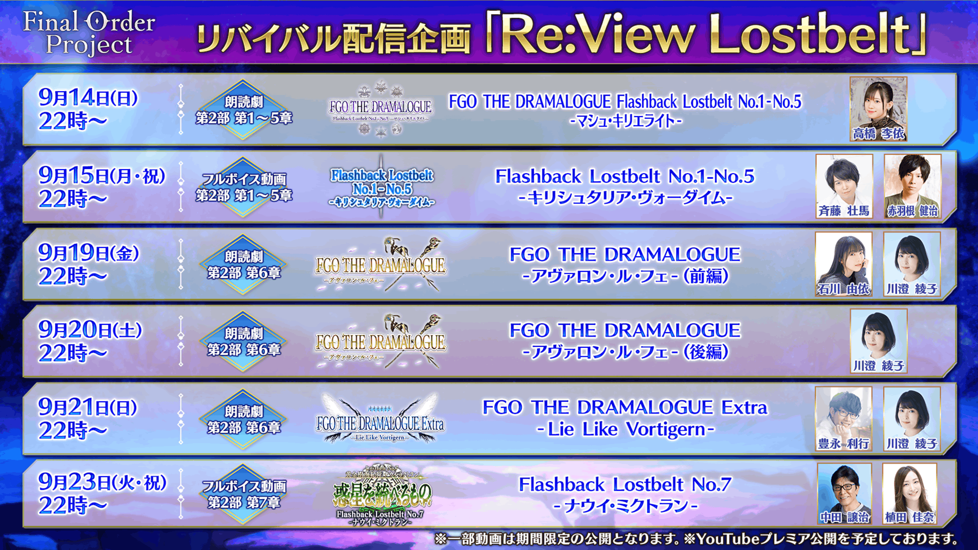 過去の朗読劇やフルボイス動画をキャストトークやオーディオコメンタリーで配信する企画「Re:View Lostbelt」を発表いたしました。