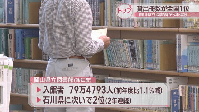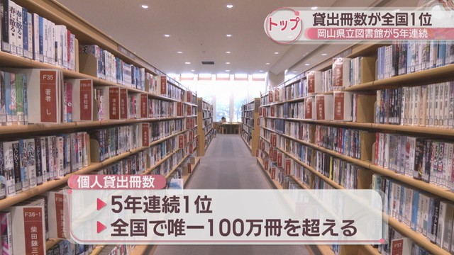 岡山県立図書館の2024年度の個人貸出冊数が全国の都道府県立の図書館の中で最も多かったことが分かりました。5年連続の1位です。