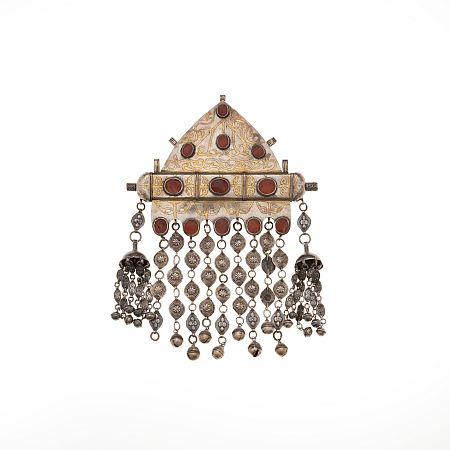 そんなトルクメンならではの装身具は、カーネリアン(紅玉髄)と銀の華やかな組み合わせや、重厚な趣が特徴。