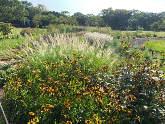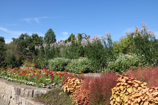 ダリアやケイトウ、サルビアで彩られた、屋根のない花の美術館。
