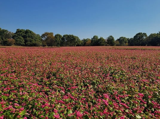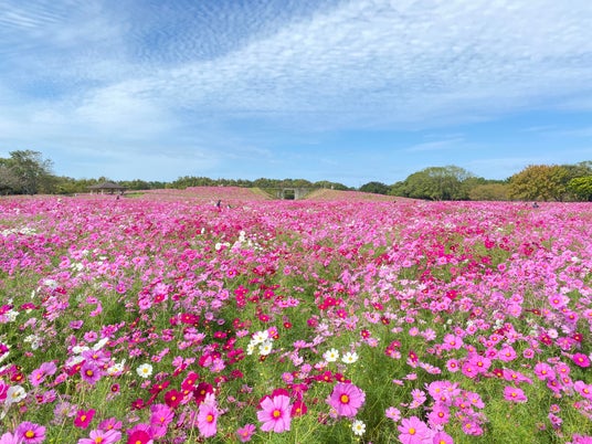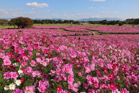期間中は100万本のコスモスをはじめ、真っ赤に染まるコキア、ピンク色の波を織りなすミューレンベルギア・カピラリスに加え、今年は新たに赤ソバの花畑も登場し、秋の花々に彩られます。