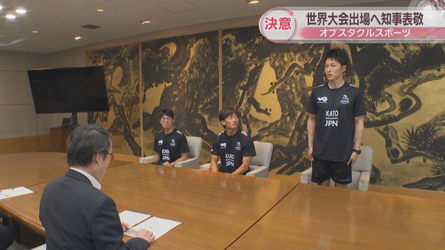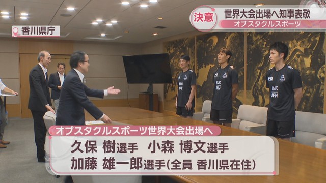 池田知事を表敬訪問したのは「オブスタクルスポーツ」の日本記録保持者で香川県職員の久保樹選手(38)ら3人です。3人は、9月11日にスウェーデンで始まる世界大会に出場します。