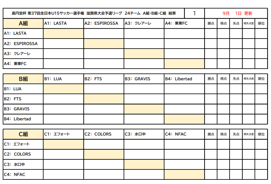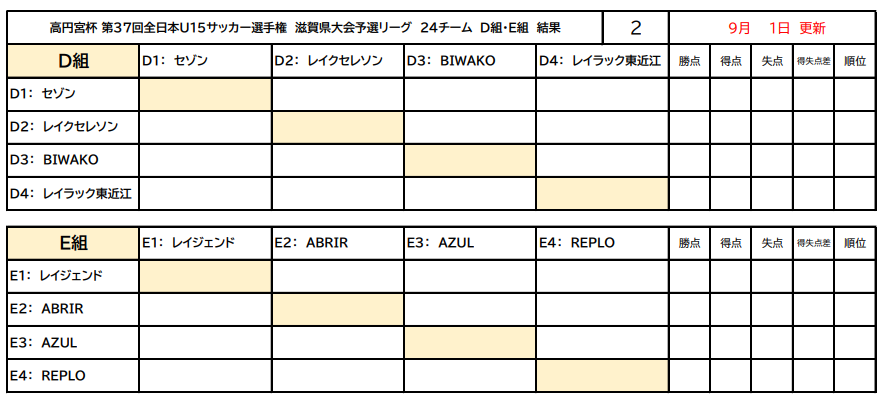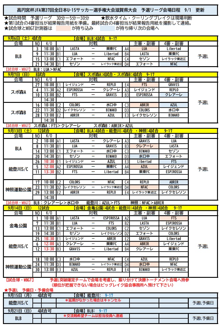 予選リーグ 9/6(土)・9/7(日)・9/13(土)・9/14(日) 【9/15(月)・9/21(日)予備日】