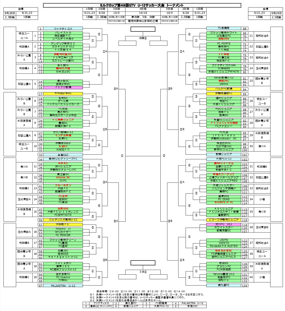 ・小学生総体ベスト16の8チームは1回戦をシードの場合もある