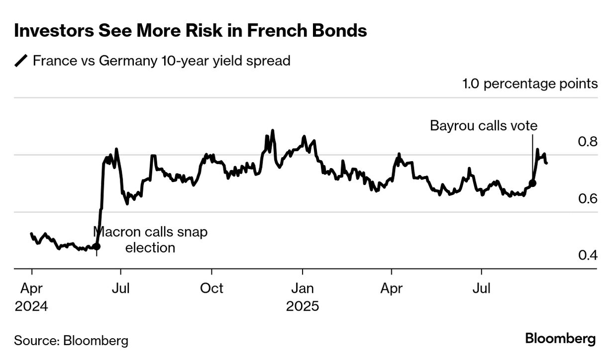 関連記事:フランス内閣が9月にも総辞職の恐れ、信任投票実施へ-仏資産に売り
