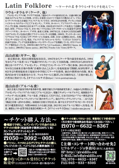 『Latin Folklore~ケーナの名手ラウル・オラルテを迎えて~』が2025年11月24日 (月・祝)に横浜市神奈川区民文化センター かなっくホール(神奈川県 横浜市神奈川区 東神奈川 1-10-1)にて開催されます。