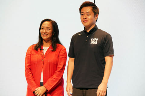 対談形式で大阪府の取り組みを説明する。日本マイクロソフト代表取締役社長の津坂美樹氏と吉村知事生成AIによる仮想ユーザー分析で商品開発をスピードアップ