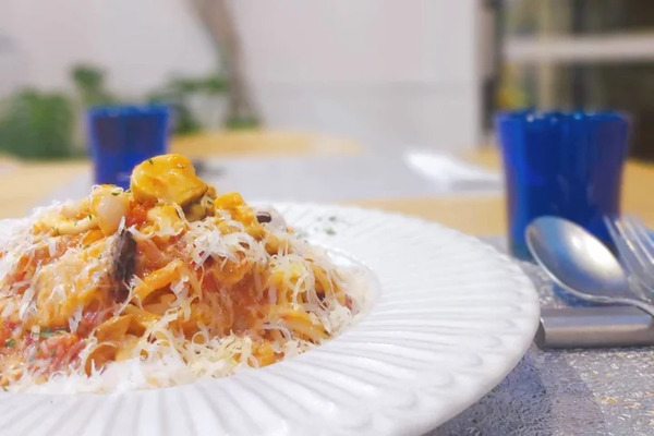 「ウミトソラ」の舟形マッシュルームのトマトパスタ&クリームパスタ、