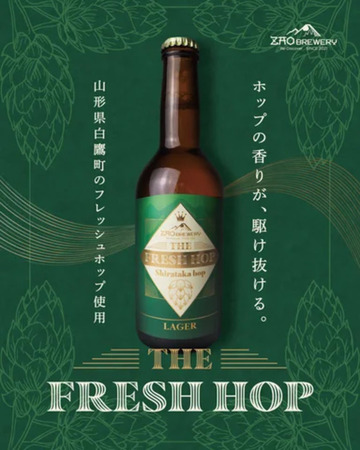 2025年夏に収穫した山形白鷹産ホップをふんだんに使用し、収穫直後の爽やかな香りを閉じ込めた、鮮度抜群の限定仕込み「THE FRESH HOP」。