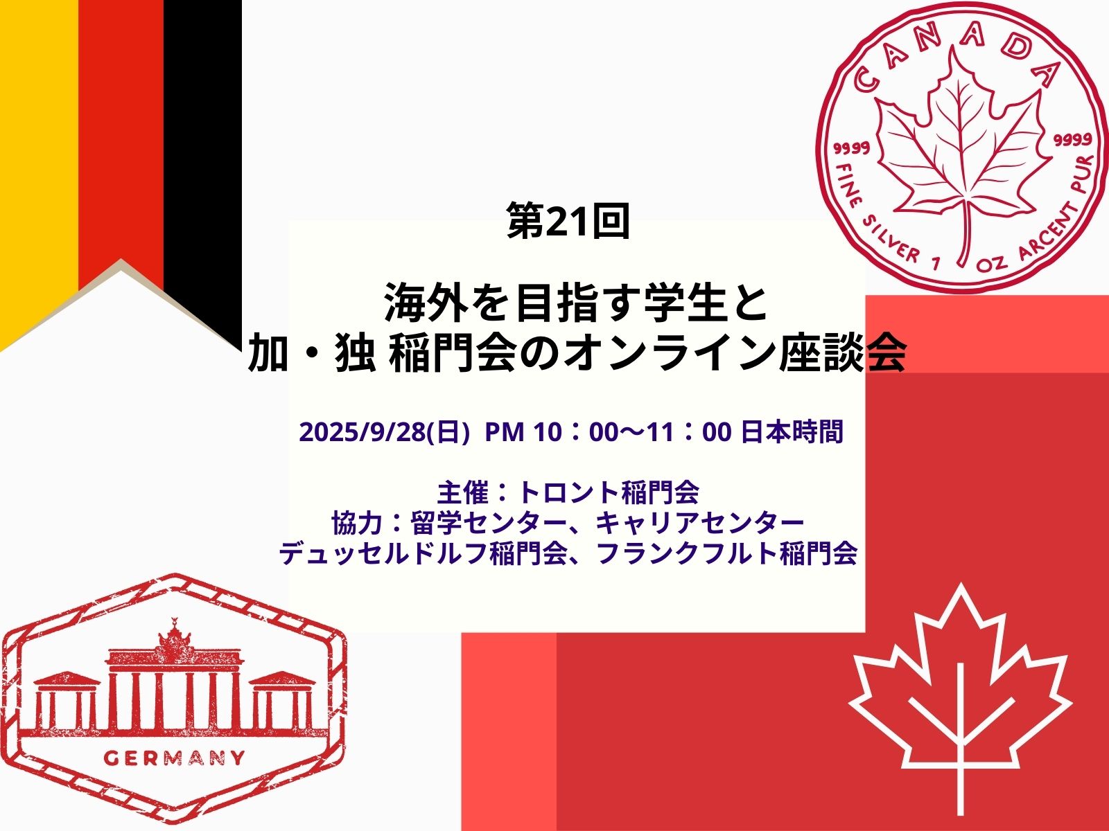 <全学年対象>【9/28】「第21回 海外を目指す学生と加・独稲門会のオンライン座談会 - テーマ:ヨーロッパのスタートアップ企業の特徴について -」