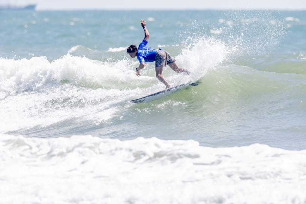 小林桂は自分のスコアを出せるポジションをすでに見極めており、ファイナルでも迷うことなくそのポジションで波を待機。スタートのホーンと同時に乗った1本目で6.00ポイントをマークした。その勢いを保ちながらライディングを重ね、7本目には6.17ポイント、さらに14本目にはレイバックのワンマニューバーで6.83ポイントをスコア。ガッツポーズを見せるほど手応えのあるライディングで会場を沸かせた。