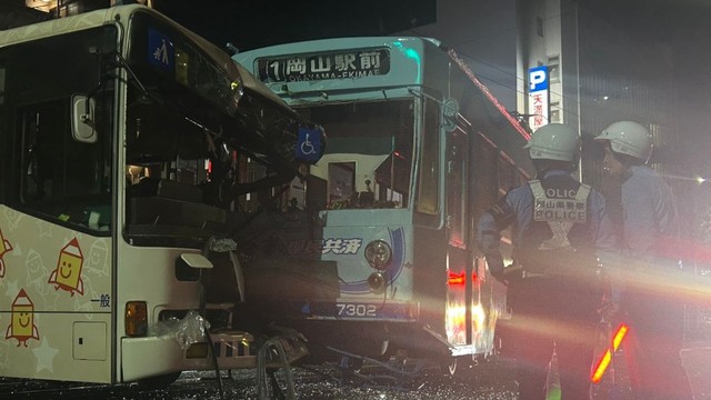 15日午後8時35分ごろ、岡山市北区の県道交差点で岡山電気軌道の路面電車と岡電バスの路線バスが衝突しました。この事故で路面電車は脱線し、周辺には破片が散乱しました。