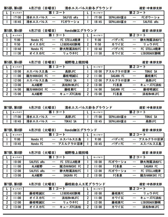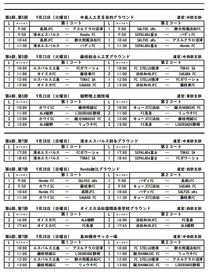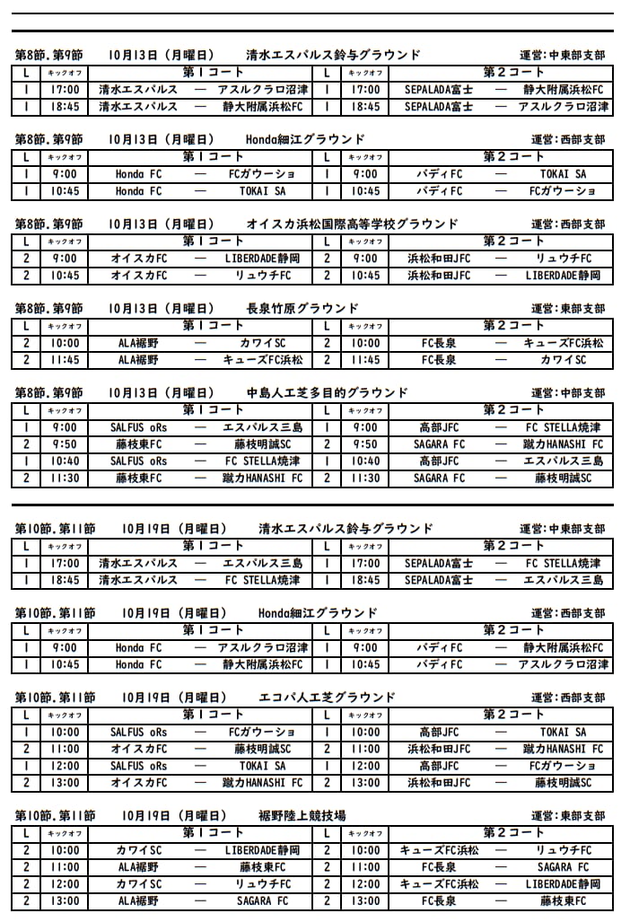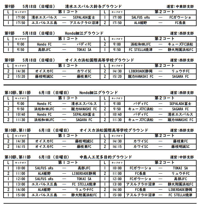 SALFUS oRs、FCガウーショ、清水エスパルス、SEPALADA SC、エスパルス三島、FC STELLA焼津、Honda FC、高部JFC、静大附属浜松FC、TOKAI SA、アスルクラロ沼津、バディFC