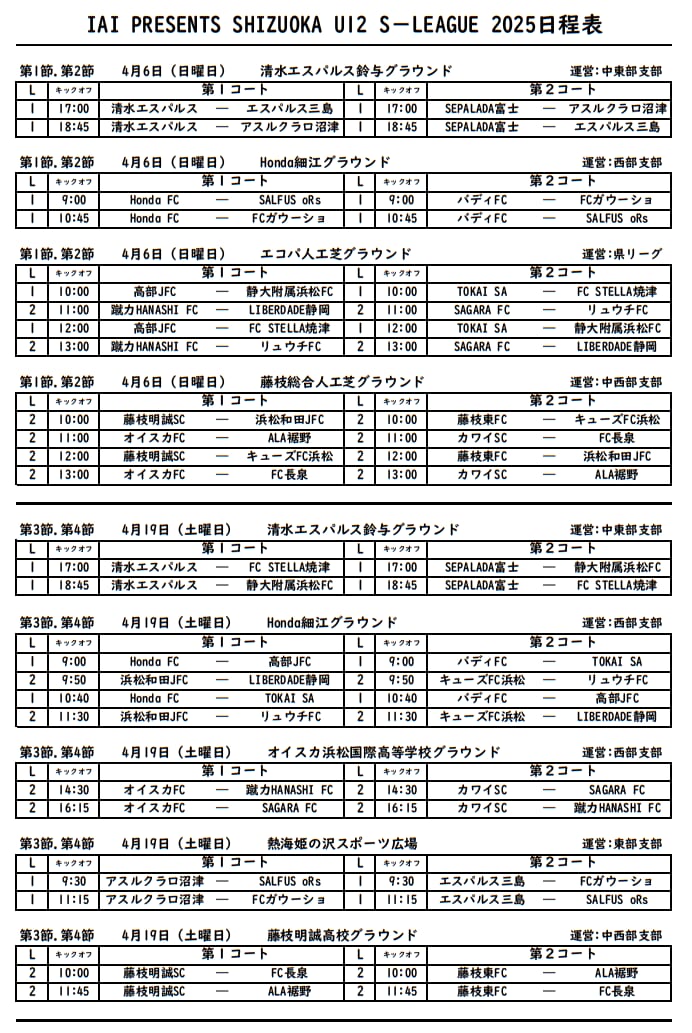 IAI PRESENTS SHIZUOKA U-12 S-LEAGUE 2025(静岡県U-12 Sリーグ)