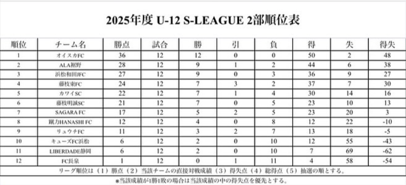 参照:SHIZUOKA U-12 S-LEAGUE 2024Instagram