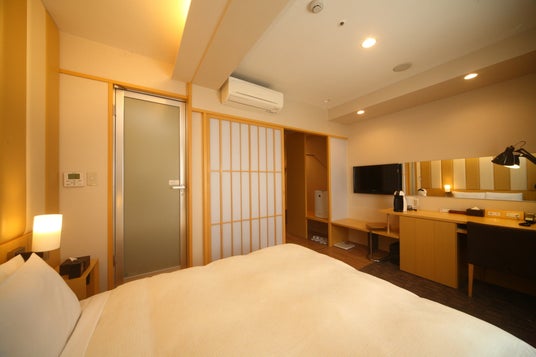 シングル・ダブル / 熊本城(銀杏城)をイメージしたイチョウ色のお部屋。障子を閉めて、落ち着いた和の空間に。ツインタイプあり。