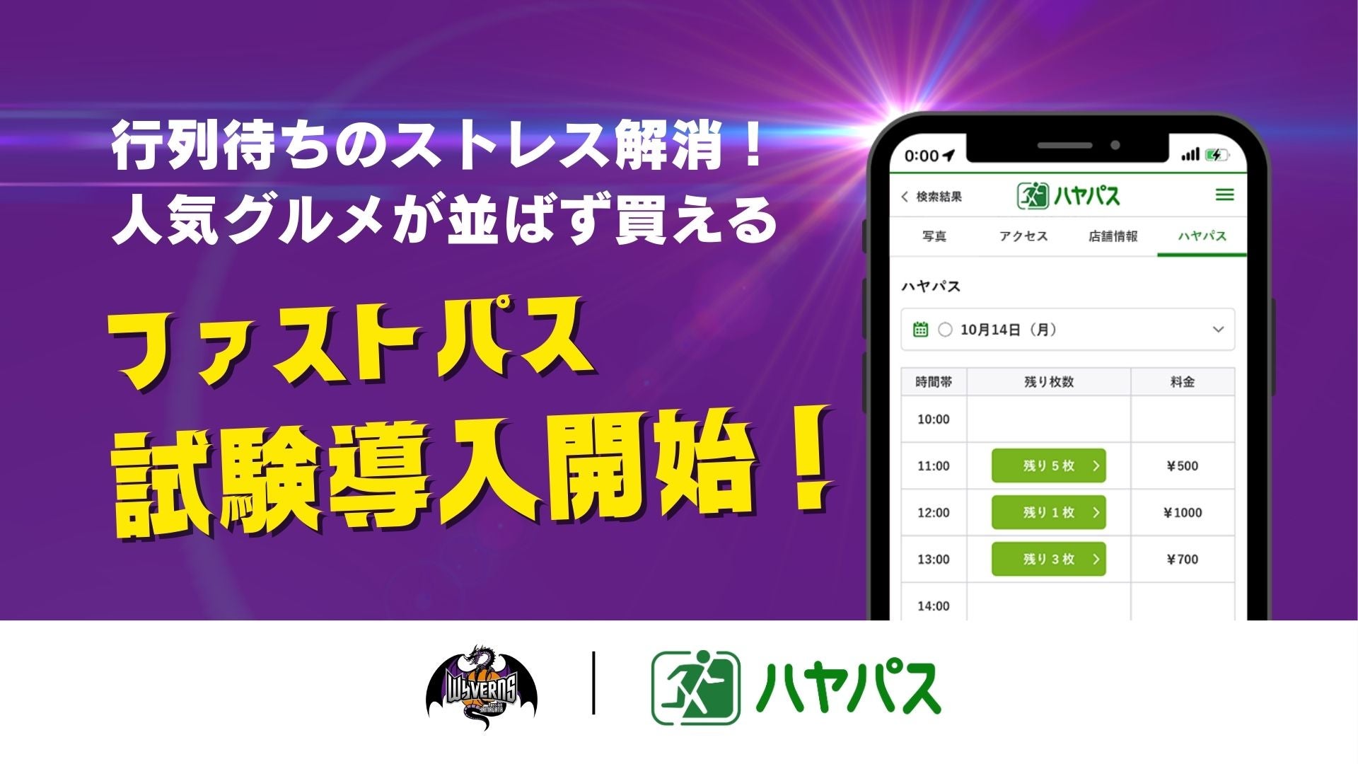 アリーナグルメのサービス充実にあたり、より便利により快適に過ごしていただけるようファストパス(ハヤパス)を導入致します。