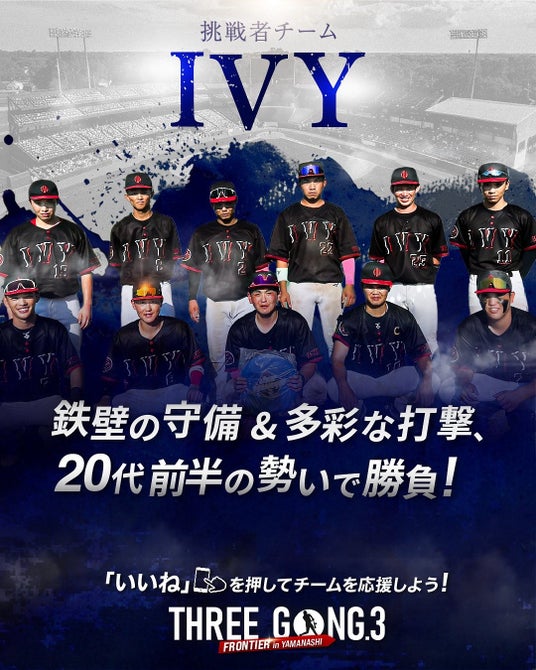 THREE GONG(スリーゴング)はノーアウト1.3塁からプレイボール、9回表・裏の攻防のみで勝負が決まる、これまでの野球概念を覆す新たな野球イベントです。
