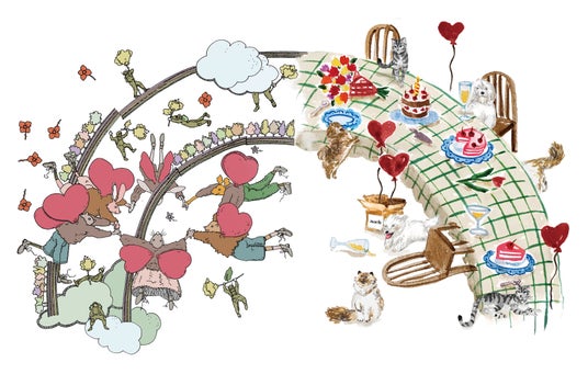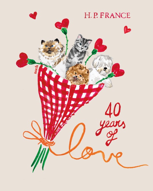 「イラストを通して伝えたかったのは、ナッシュの世界観そのものです。鮮やかな色彩に満ち、楽しくて詩的な世界。そこでは、自然と動物は欠かせない存在です。お祝いのイメージとして、ナッシュらしさを象徴するものを集めました。お気に入りの仲間である猫と犬、そして喜びや祝福を表す花束です。さらに、ナンシーが描いた四輪の花には、アッシュ・ペー・フランスの40周年へのオマージュが込められています。文化的にも、人とのつながりにおいても大切な存在である皆さんへの敬意を込めています。」
