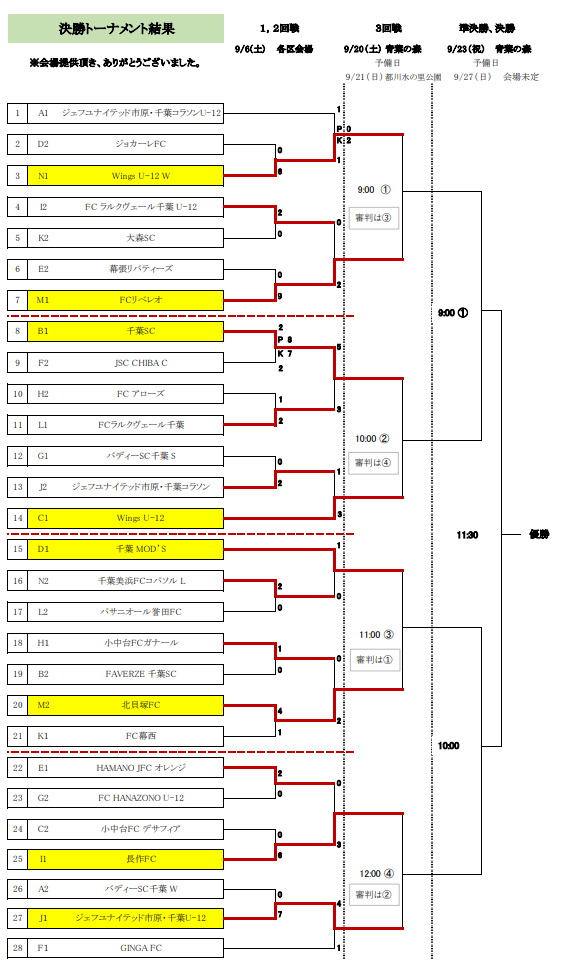 決勝トーナメント組合せ(9/6~9/23)