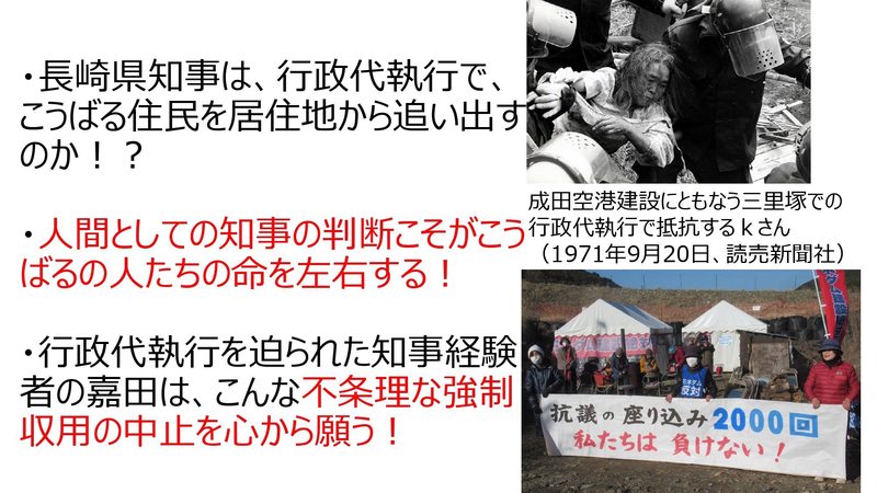 6: 成田空港建設時、三里塚闘争のような、行政代執行を,今長崎県知事は行うのか?
