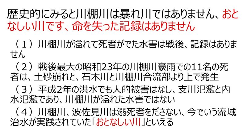 9: 石木ダム下流の川棚川はおとなしい川,歴史的に溺死者はでていない