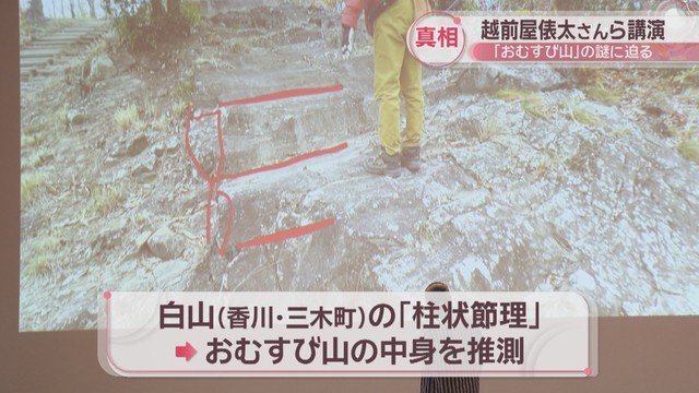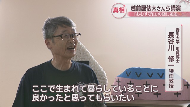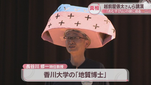 お笑いタレントの越前屋俵太さんらが22日、高松市の高校を訪れ、香川県の「おむすび山」について講演しました。