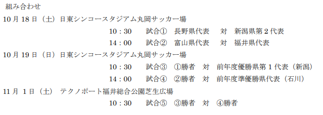 *優勝チームには、北信越地域代表として JFA 第29回全日本 U-18 女子サッカー選手権大会への出場権を与える。