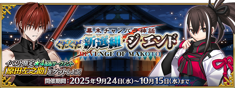 期間限定イベント「幕末チャンバラ神話 ぐだぐだ新選組・ジ・エンド REVENGE OF MAKOTO」が2025年9月24日(水) 20:00より開幕することを発表いたしました。
