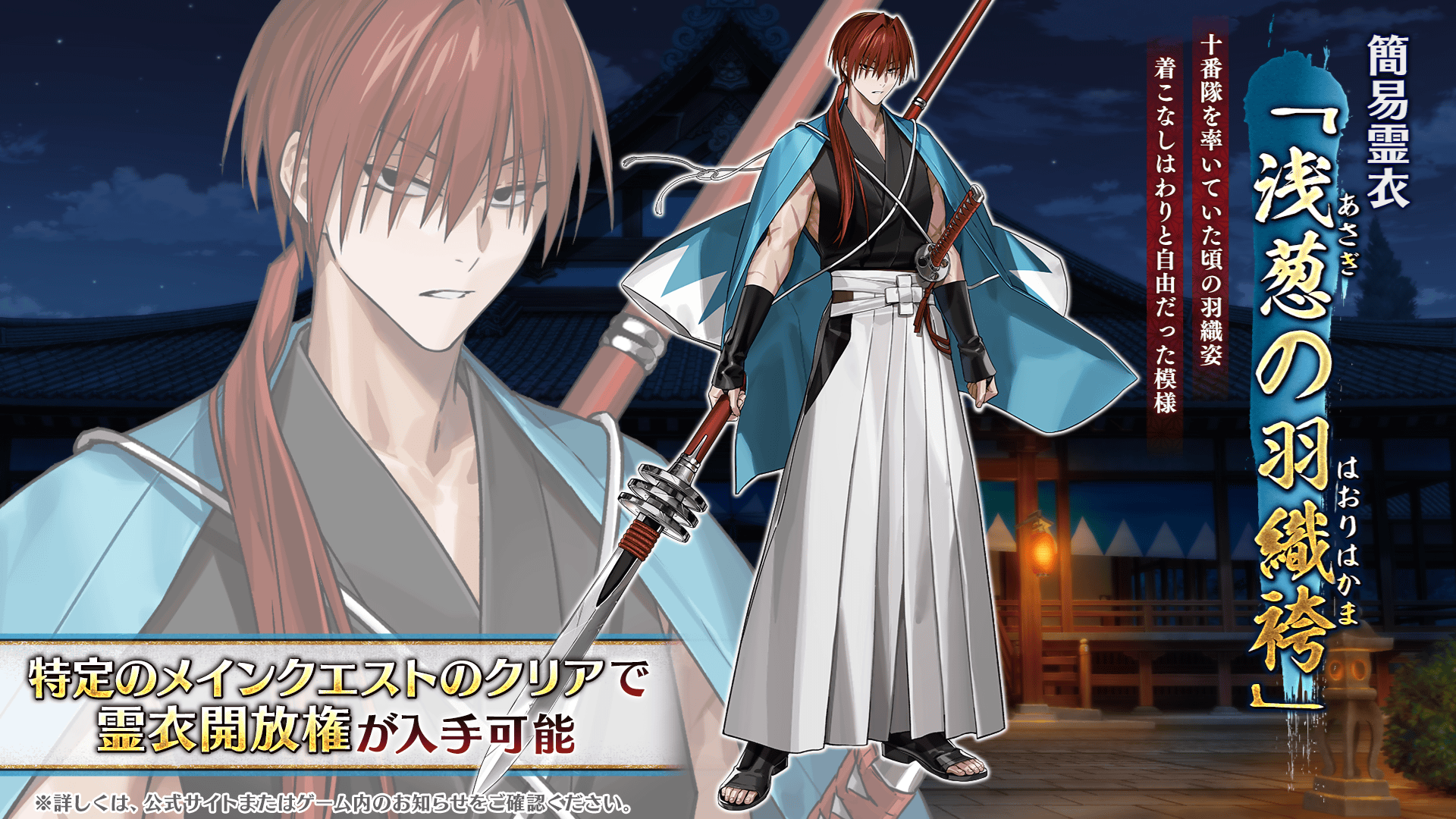 期間限定イベント「幕末チャンバラ神話 ぐだぐだ新選組・ジ・エンド REVENGE OF MAKOTO」の報酬として、「★4(SR)原田左之助」の簡易霊衣「浅葱の羽織袴」の開放権が登場!