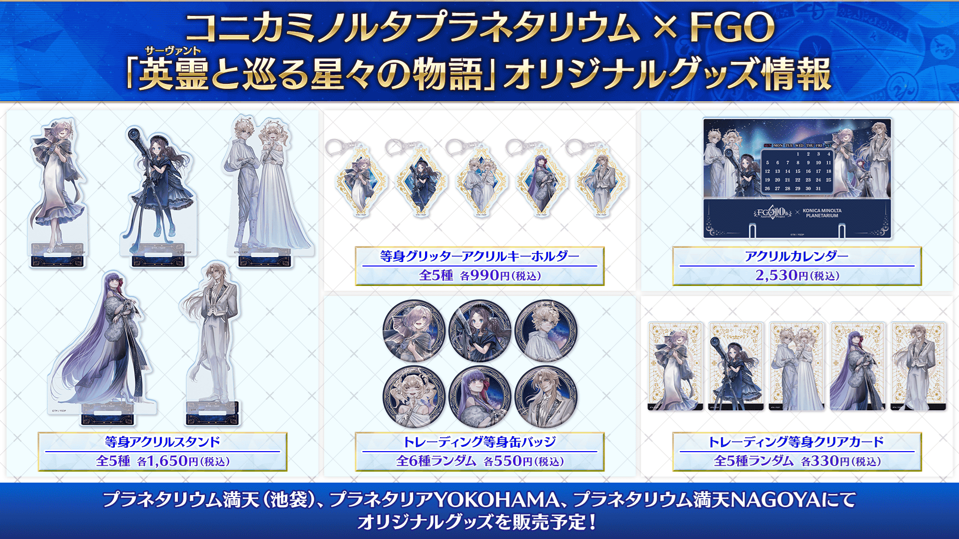 「コニカミノルタプラネタリウム」と「Fate/Grand Order」のコラボレーション「英霊(サーヴァント)と巡る星々の物語」のグッズラインナップを一部公開いたしました。