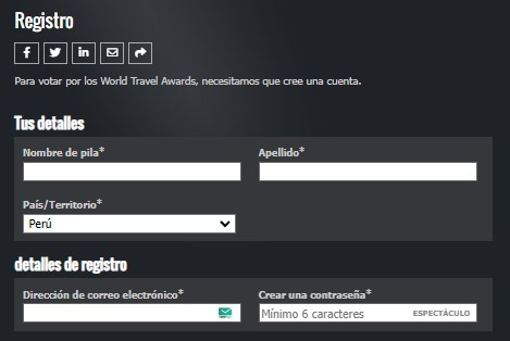 入力:www.worldtravelawards.com無料の個人アカウントを作成してください.
