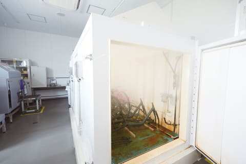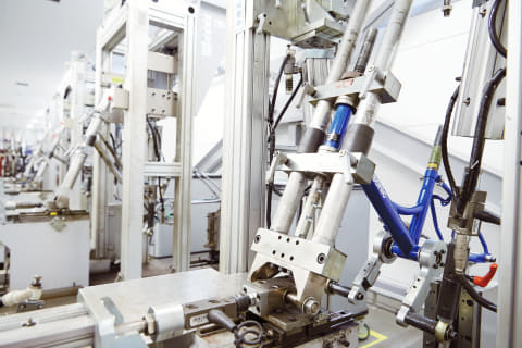 フレームに繰り返し荷重を加え、破損や変形に至るまでの耐久性を測定。自社基準をクリアすることに加え、破損時の状態までも確認して評価したという。