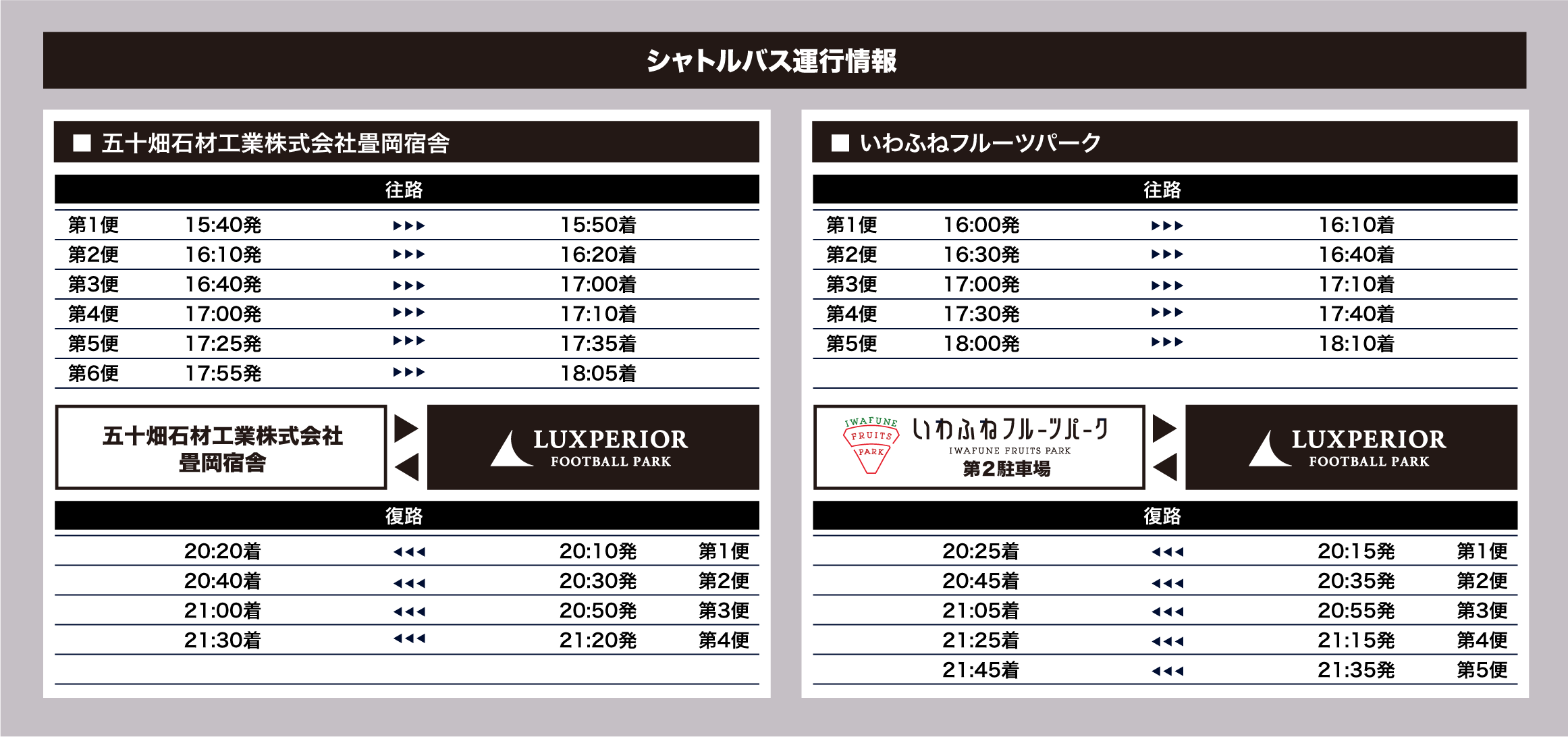 ナイトゲームの今節、試合終了後の運行はございませんのでご注意ください。