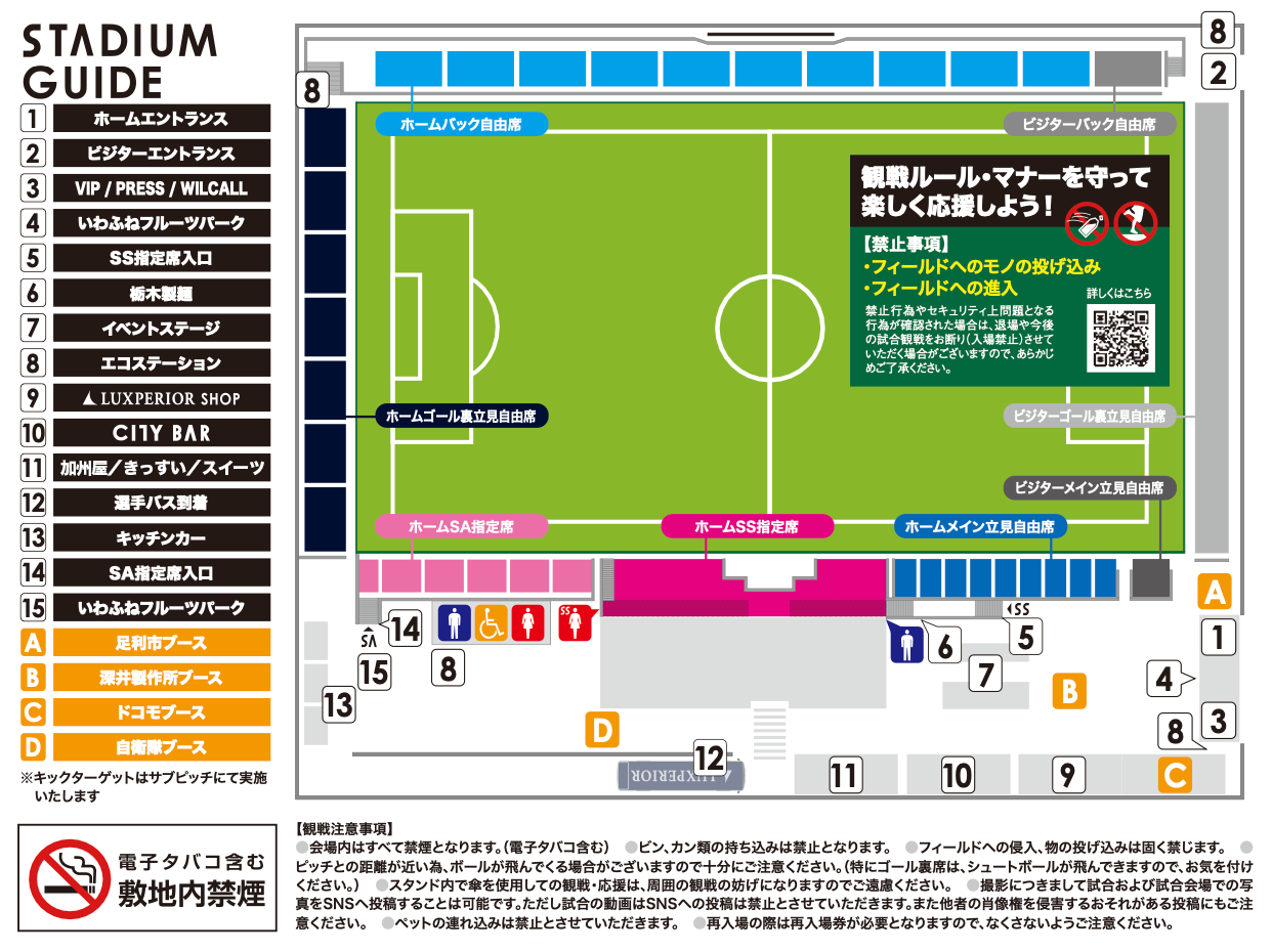 ・ビジタークラブの選手バスが到着・出発する際の入り待ち・出待ちは、スペースや安全面を考慮し禁止とさせていただきます。何卒ご理解をお願いいたします。