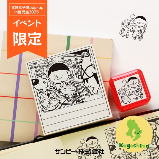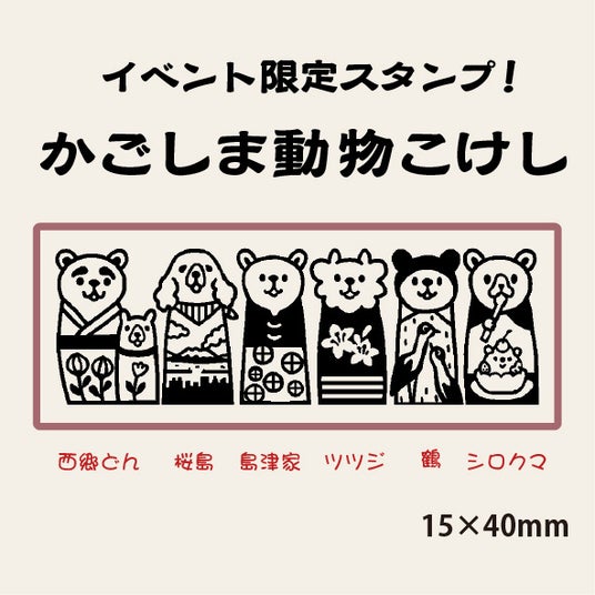 「文具女子博 pop-up in 鹿児島2025」にて先行販売のイベント限定商品!西郷どん、桜島、島津家、ツツジ、鶴、シロクマ…。鹿児島といえば!なアイテムと動物とこけしがコラボレーションしたデザインのスタンプです!