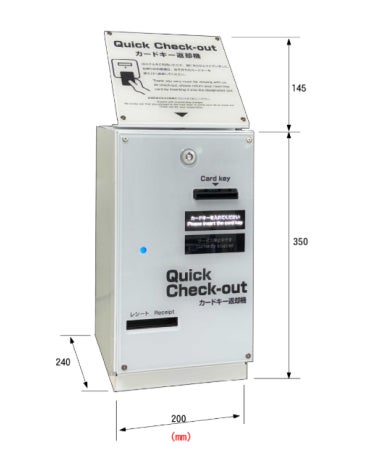 自動チェックアウト機自動チェックアウト機は「チェックアウトの混雑を解消したい」、「自動チェックイン機を導入したいが費用や設置スペースが難しい」といった宿泊施設様からの声を受け開発しました。