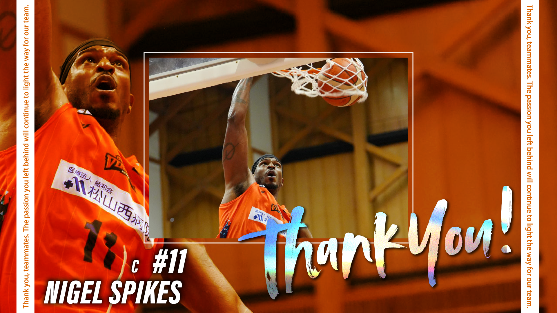 愛媛オレンジバイキングス一同、ナイジェル・スパイクス選手のこれまでの活躍に感謝申し上げるとともに、新天地での活躍を心よりお祈り申し上げております。
