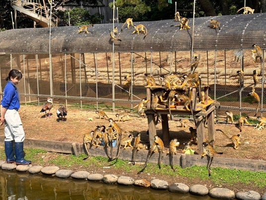 訪れた人々は、その姿に釘付けになり、貴重な瞬間を撮影するためにカメラを構えたりしています。休日はエサやり体験も開催。エサを求めて大集合するリスザルたちをご覧いただけます。