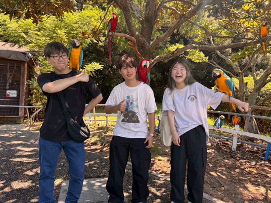 ルリコンゴウインコなどに触れ合えます。肩や腕に載せて写真を撮って素敵な思い出を作りませんか? 飼育員による、目からウロコなインコ豆知識解説付きです。