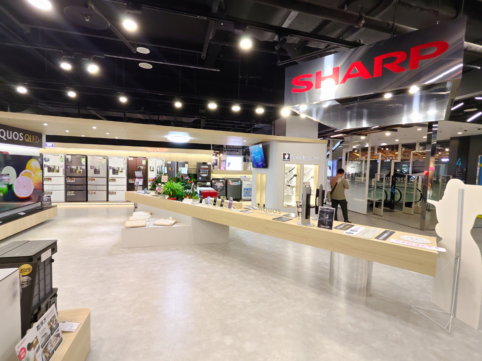 とはいえ海外では多くのメーカーの製品がひしめきあっており、シャープもなかなか存在感を高めることができません。しかし台湾ではシャープの家電売り場のスマートフォンコーナーが一新され、最新ラインアップが堂々と展示されていました。