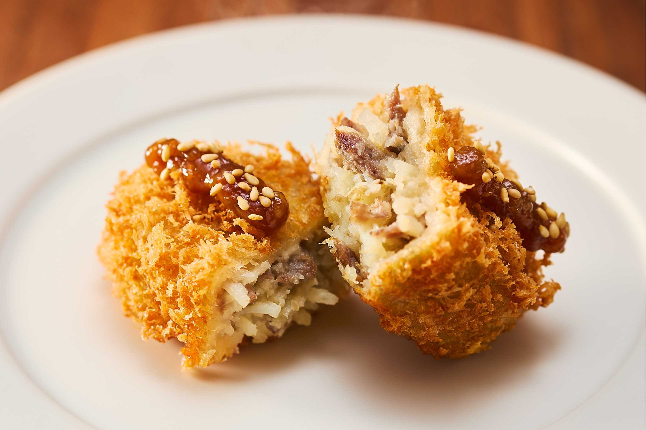 真空調理で食感を残した牛タンと細切りポテトの組み合わせ。ぴりっと辛い青唐辛子と味噌を合わせた味噌南蛮ソースがアクセントです。期間限定の味わいを、ぜひお楽しみください!