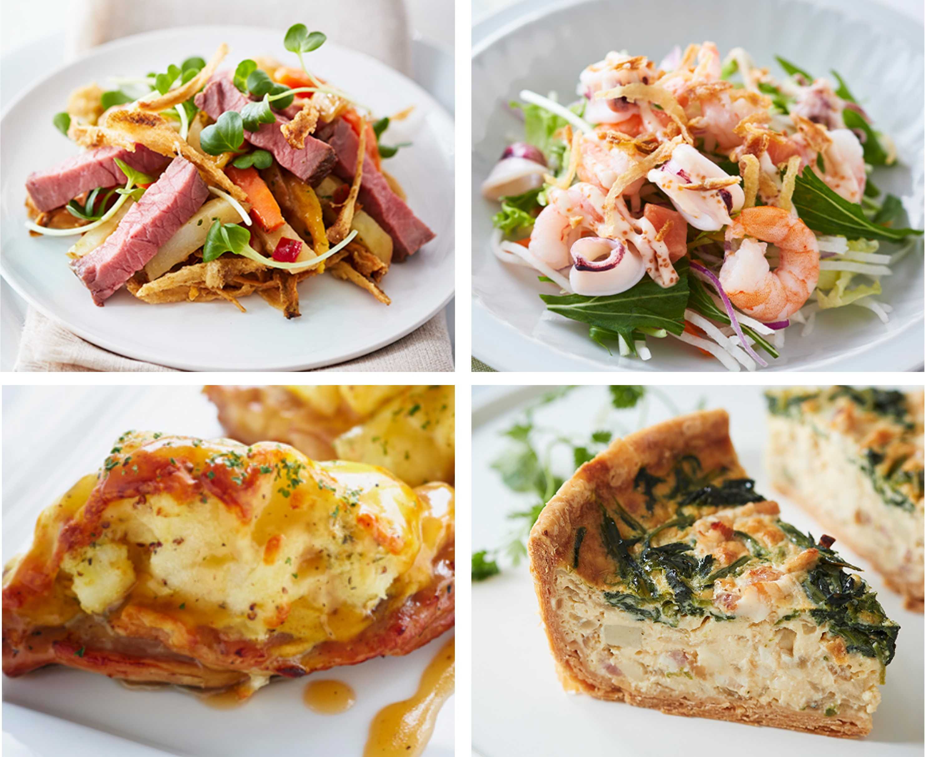 ※画像はサラダ(上段)100g、料理(下段)は1個を盛り付けています。