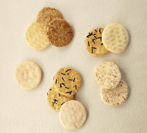 国産米にこだわった「ミニせんべい」各種250円など、こだわりの味も勢ぞろいしている。